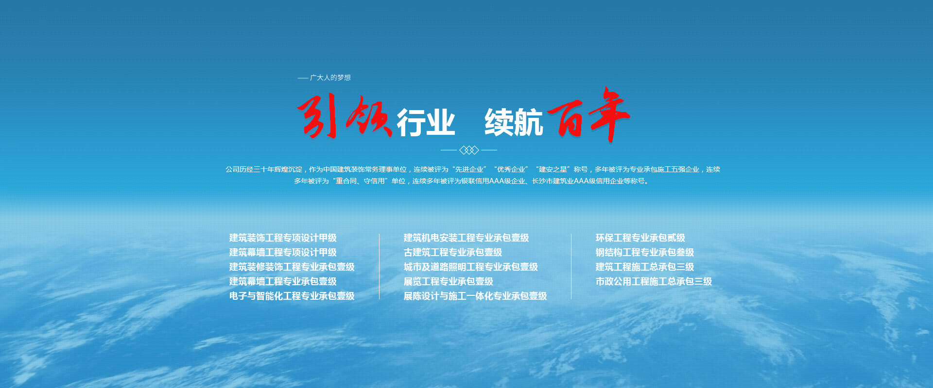 长沙�q�大建筑装饰有限公司是一家以建筑装饰、幕墙、工�E�设计、亮化、机��c��智能化、园林等��Z����g�业,家装、��业生产、徏材销售�ؓ辅的大型�l�合企业�?/p>